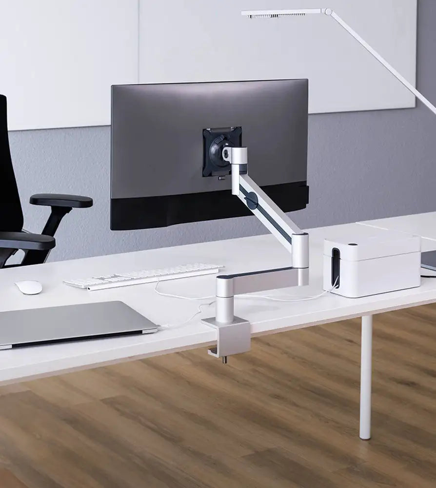 Featuring a flexible ball joint and 360-degree rotation, it allows for easy adjustment to any angle. The symmetrical clamp design offers effortless handling, while rubberized surfaces protect your device from damage. This versatile holder is ideal for securing tablets in demanding industrial workspaces.