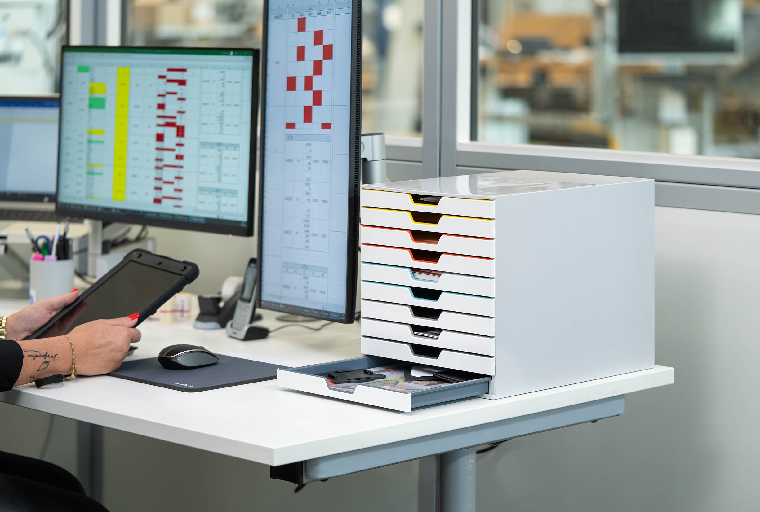 Take a look at how you can de-clutter your desk with Durable's smart VARICOLOR® solutions.