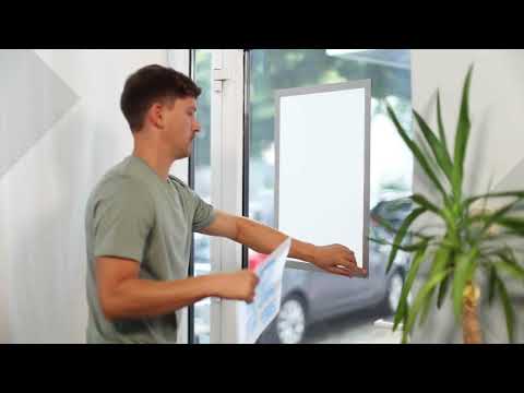 They are suitable for posters on walls, glass and shop windows etc. Quick insertion and exchange of documents via a fold-back magnetic frame helps with quick-changing, seasonal signage.