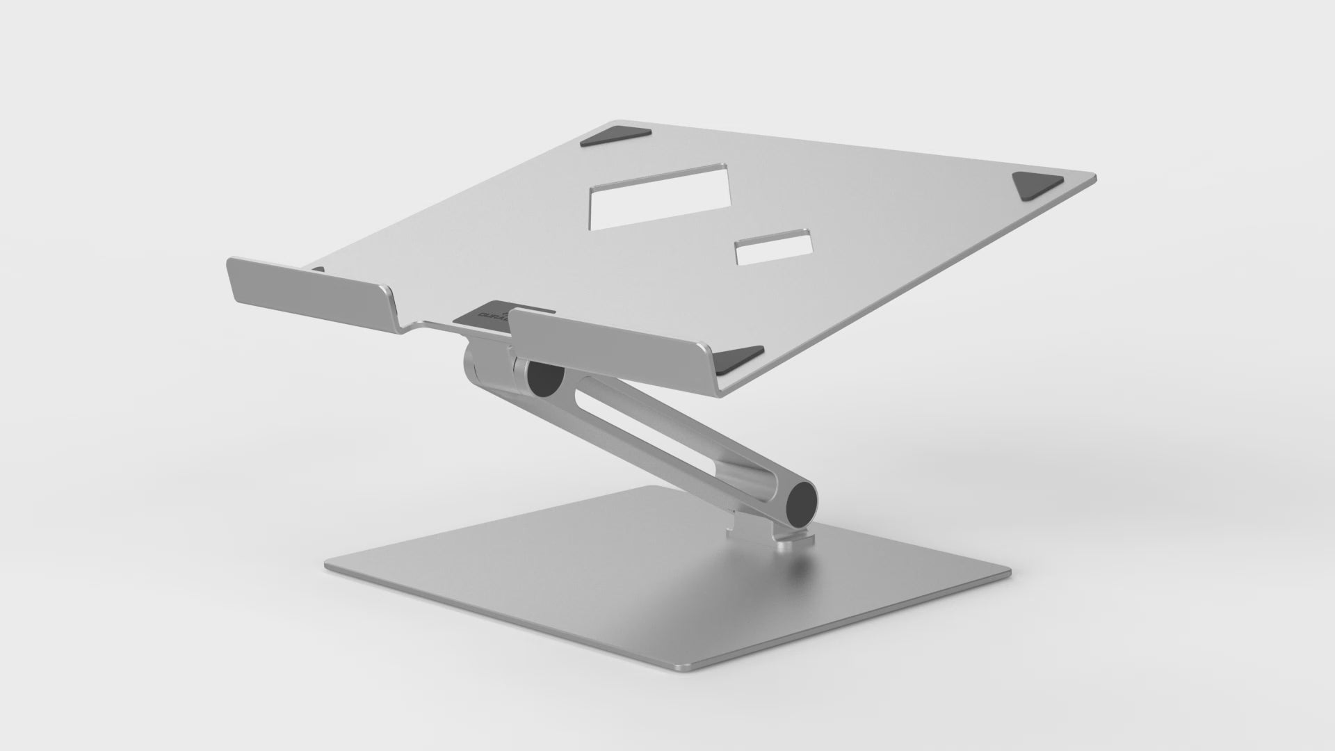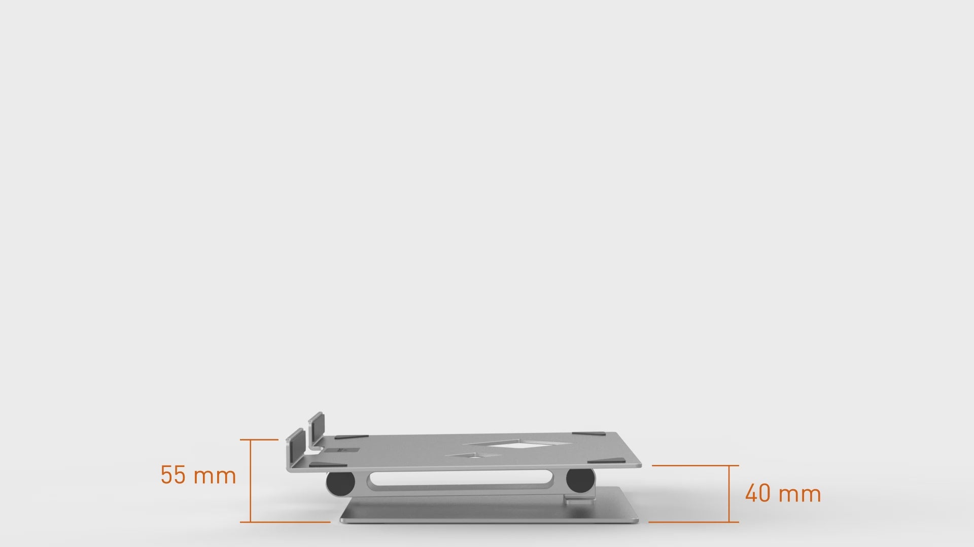 Universally adjustable stand for laptops and tablets from 10" to 17" (up to 5 kg). The Durable Laptop stand RISE facilitates ergonomic work through easy height and reading angle adjustment. With more people than ever working from home, the laptop stand easily allows for your laptop to be used along side an additional monitor. The stand is made of strong aluminium which provides a stable and secure base to work from. The bottom of the laptop stand has non-slip rubber pads which protects againsts scratches on your desk. The stand also includes improved heat dissipation through ventilation holes on the metal plate to prevent the laptop from overheating. A simple yet stylish space-saving solution which can be folded away and packed into a travel bag.